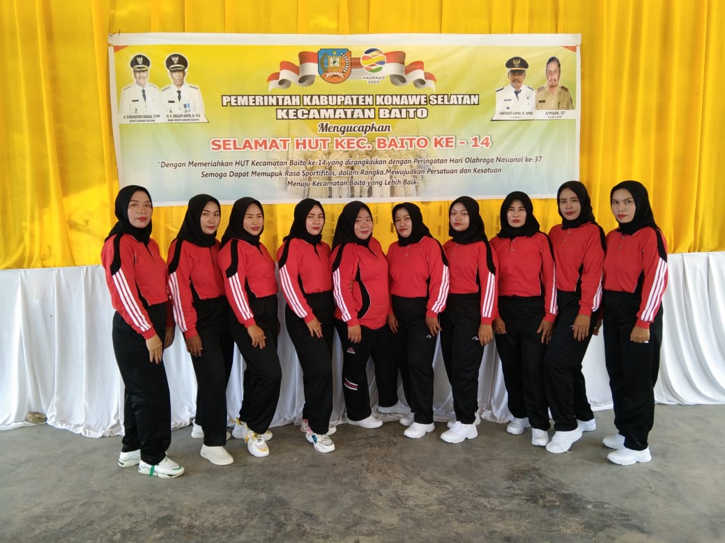 Channelsultra.com, BAITO - Dalam rangka memperingati Hari Jadi Kec. Baito, Kab. Konsel yang ke - 14, Pemerintah Kecamatan Baito selenggarakan Turnamen olah raga Bola Volly dan Seni, sebagai wujut memperingati HUT Kec. Baito, dalam kegiatan ini, juga merupakan bagian dalam melaksanakan upaya pencegahan terhadap Covid 19, sebab kegiatan olah raga, senam SKJ dan senam kreasi merupakan sebuah upaya dalam meningkatkan ketahanan tubu atau imun dalam memelihara kesehatan Masyarakat. Sabtu 17 Oktober 2020.